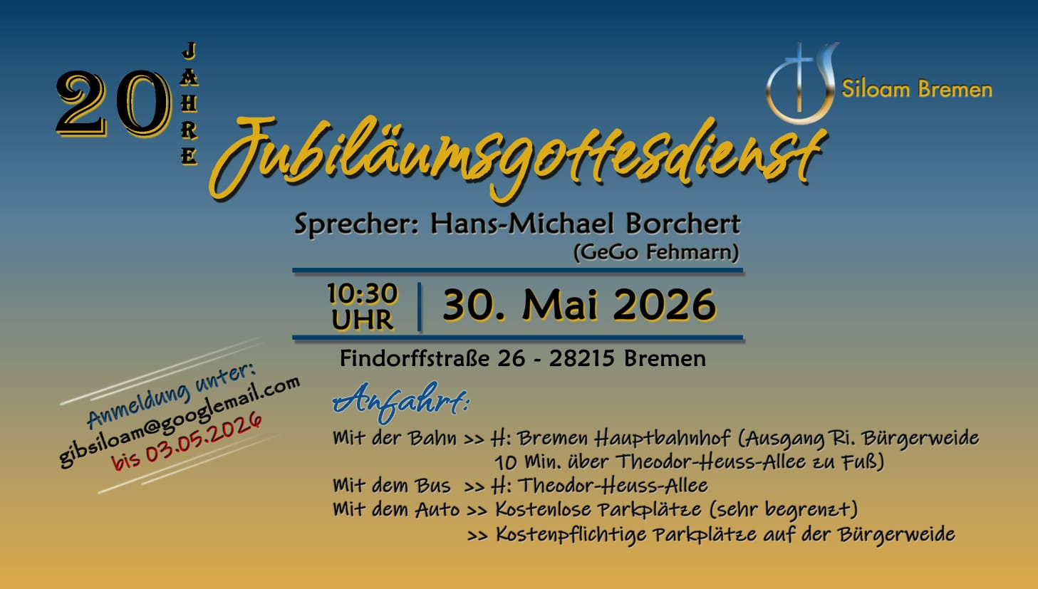 Die Gemeinde Siloam Bremen wurde im Mai 2006 gegründet und gehört zum Bund der Gemeinde Gottes Deutschland KdöR.